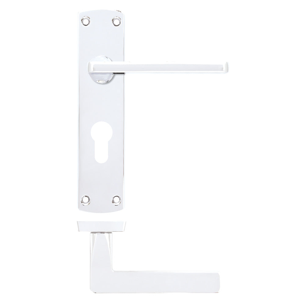 Upgrade your doors with the Leon Lever on Euro Backplate for a stylish, functional, and secure hardware solution that fits seamlessly with your locking system.
