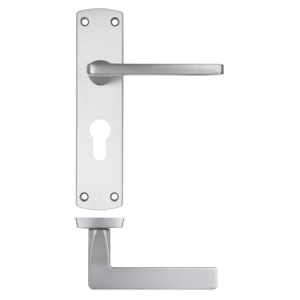 The Leon Lever on Euro Backplate combines contemporary style with practical functionality, making it an excellent choice for doors with Euro profile locking systems. This design ensures smooth operation, a sleek finish, and the durability required for high-traffic areas.